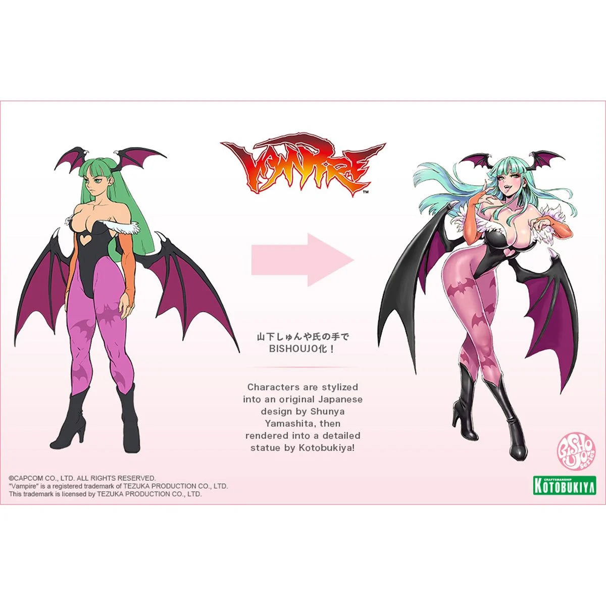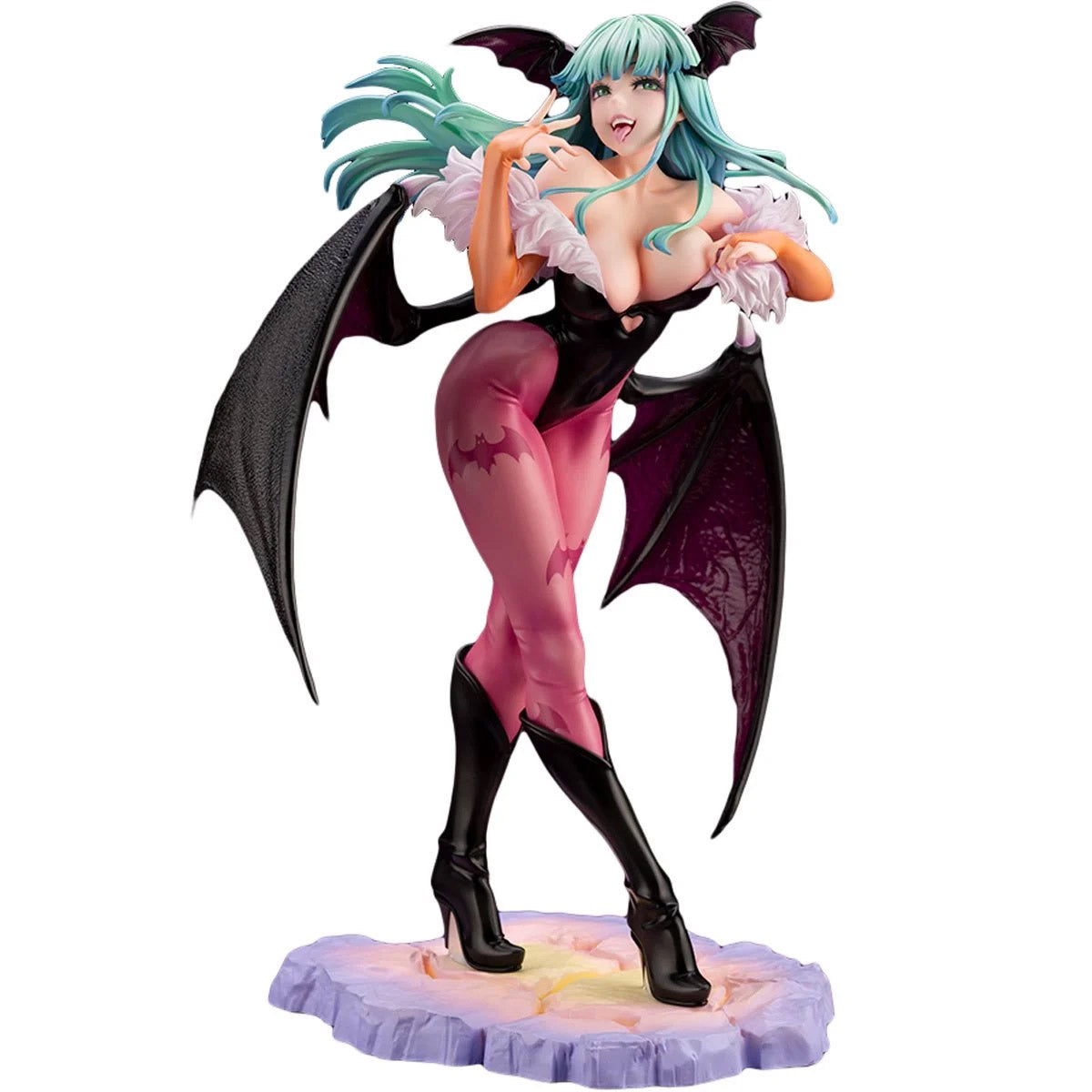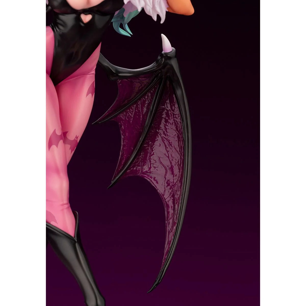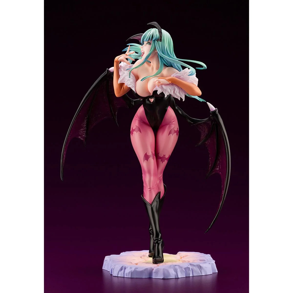 Striking a confident and free-hearts pose, various interesting textures and details (such as the realistic veins) are recreated using separate molds and a unique painting method on clear material for the wings. These elements emphasize the strange and mysterious look essential to any Darkstalkers character. The base is designed with color gradations from Morrigan's stage in the game. Made of PVC/Abs, this amazing statue stands roughly 9-inches tall.
