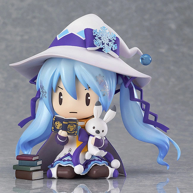 Included with the Nendoroid is a special spell book stand, her magic wand, effect parts, a magic circle as well as sitting parts are also all included! She even comes with special arm parts to display her hugging Rabbit Yukine instead of just holding her! All the parts you'll need for a truly magical experience with Snow Miku!!