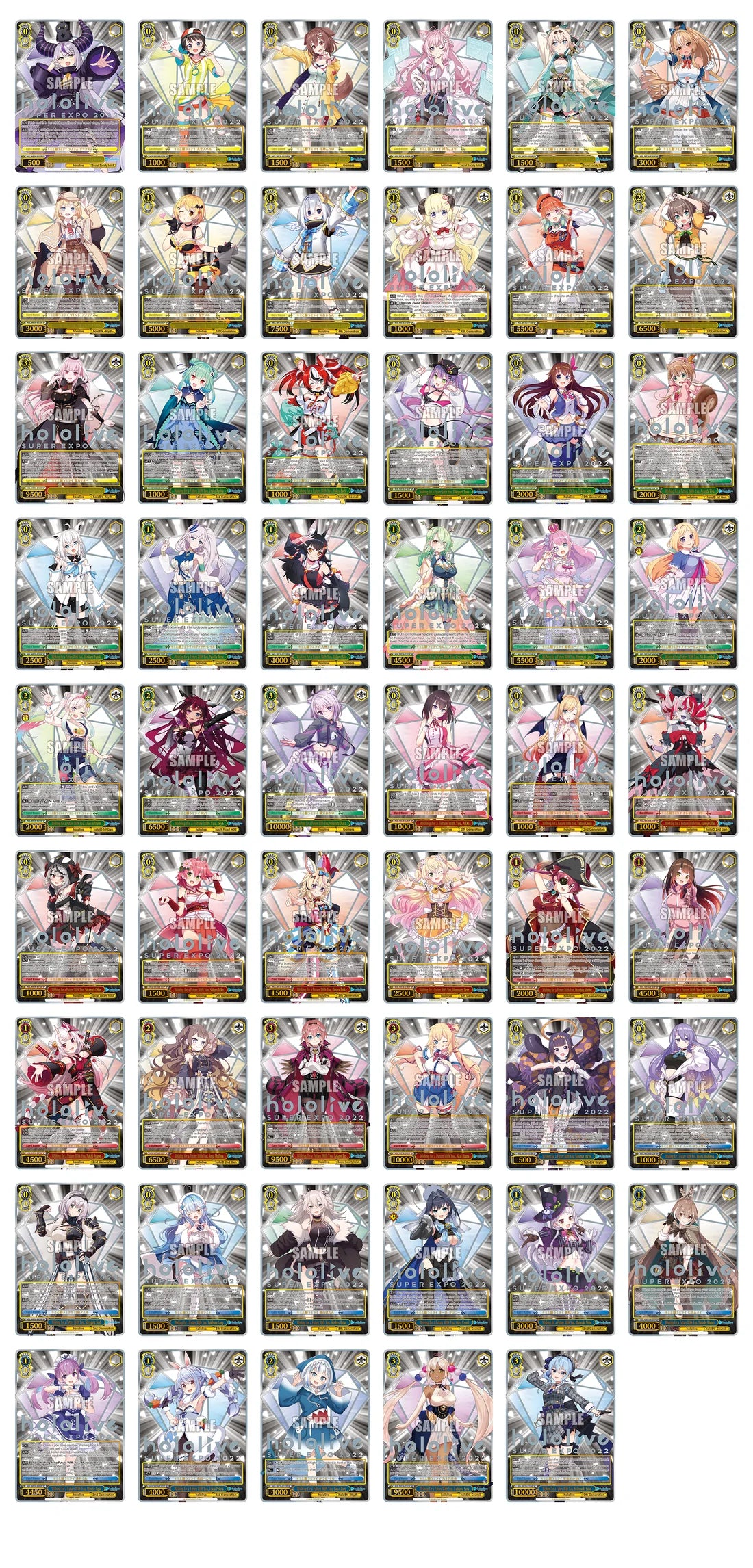 - Number of card types: N (normal) 53 types + (Hot stamped) 106 types